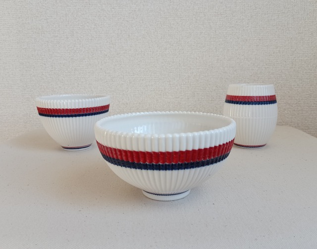 ・ 作家 白鳥好貴 ・ とても万能なサイズ感のボウル。 お椀や丼として、サラダやスープでも。 もちろん、ヨーグルトや果物いれてもおしゃれですね。 どこかシックな色あいの、明るすぎない赤とネイビーの組み合わせ。 独特の型を使った技法に、カラフルなライン使い。 同じ色をシリーズで揃えてもまたかっこいい。 この組み合わせだけでも、なんでもいけちゃいそう。 ひとり暮らし、パートナーとの新生活のお供に。 アクセサリーや、ちょっとした小物いれるのもありかな。 無地のお皿とあわせても、テーブルがいつもと違う雰囲気に。 可愛すぎない、かっこよさも感じる色合い。 レンジ使えるのが、また嬉しい。 ・直径(上部)約12センチ・(底部)約4.5センチ 高さ約7センチ ・産地 茨城県笠間市 ・材質 磁器 ・電子レンジ可 手作り品の為、色あい・サイズ等に個体差があります。 予めご了承の程、よろしくお願い致します。 ※光が反射している部分や、光の加減で色合いに画像と見え具合が多少違う可能性があることをご了承くださいませ。 ● 作品への想い ● 誰かにプレゼントをするような、器を手にとった時にやさしく楽しい気分になるような器をつくっていきたいと考えている作家さんです。 型を用いた近代的な技法に、ポップなカラーが印象的です。 手にとった時になじむような、使いやすさも考え作陶しています。
