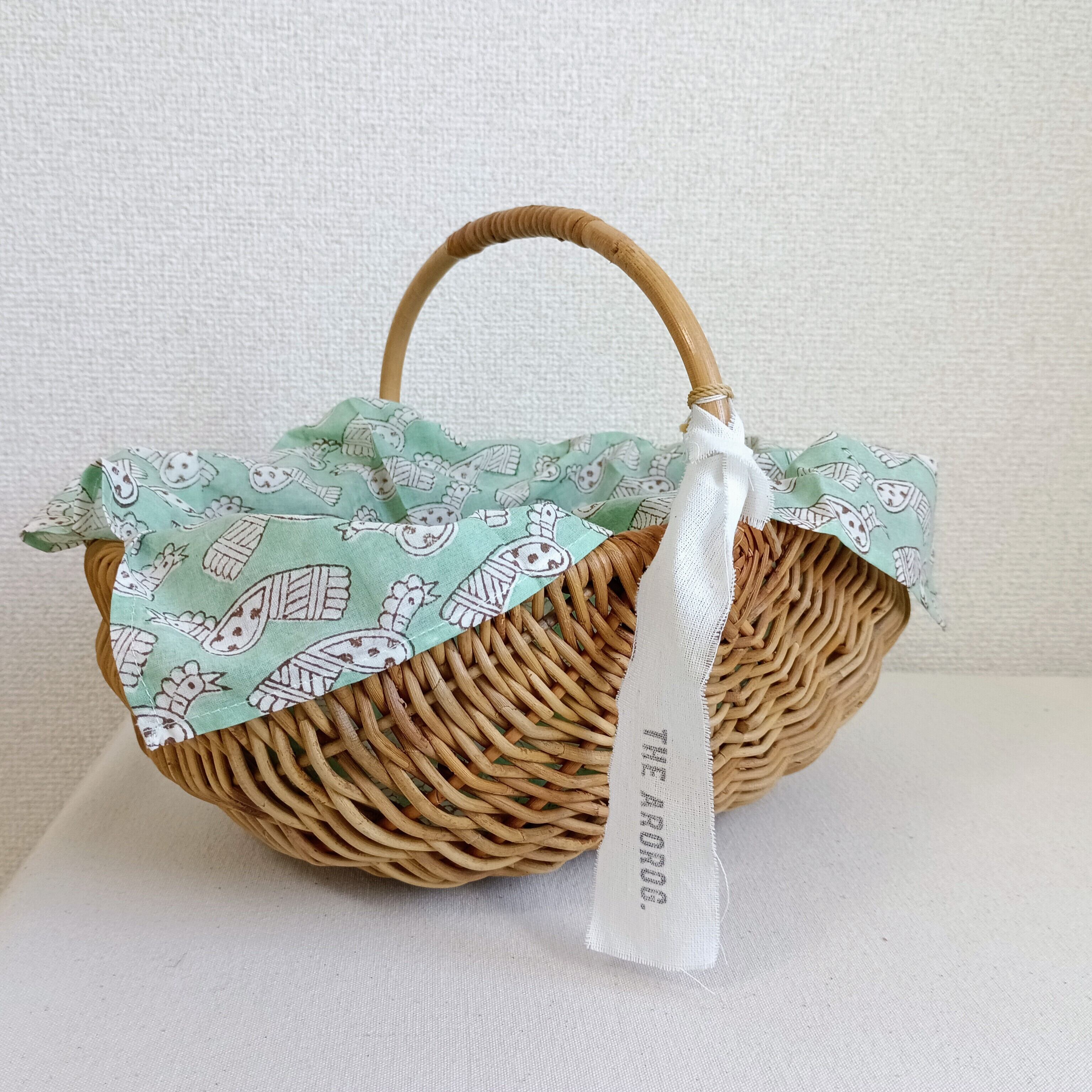 小さなスカーフにして首元を飾ったり、お弁当包みやかわいいバスケットにひいてちらっとみせて飾ったり。