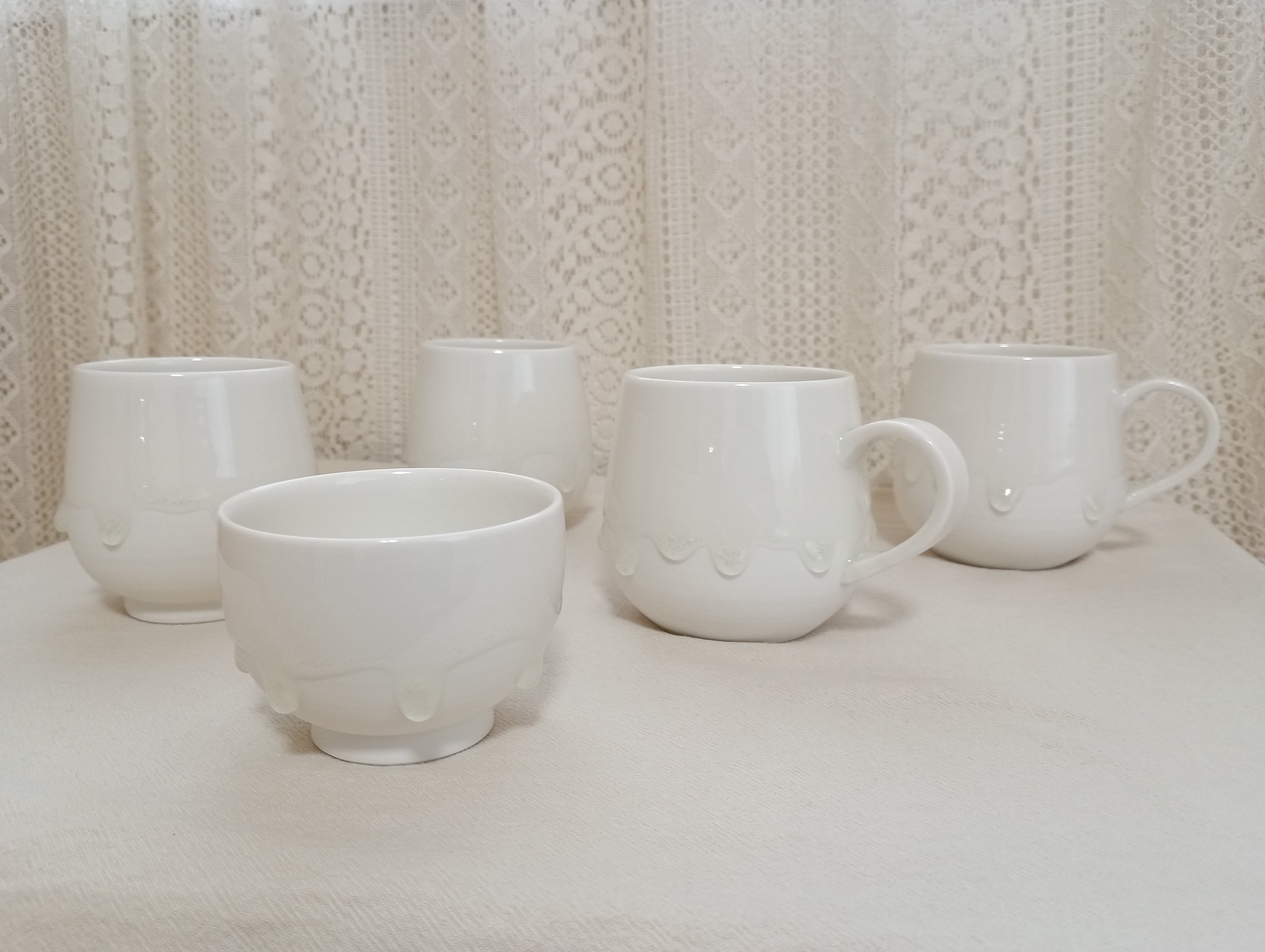 まるで雪景色のような美しい透明感のある真っ白なしずくシリーズの湯吞。