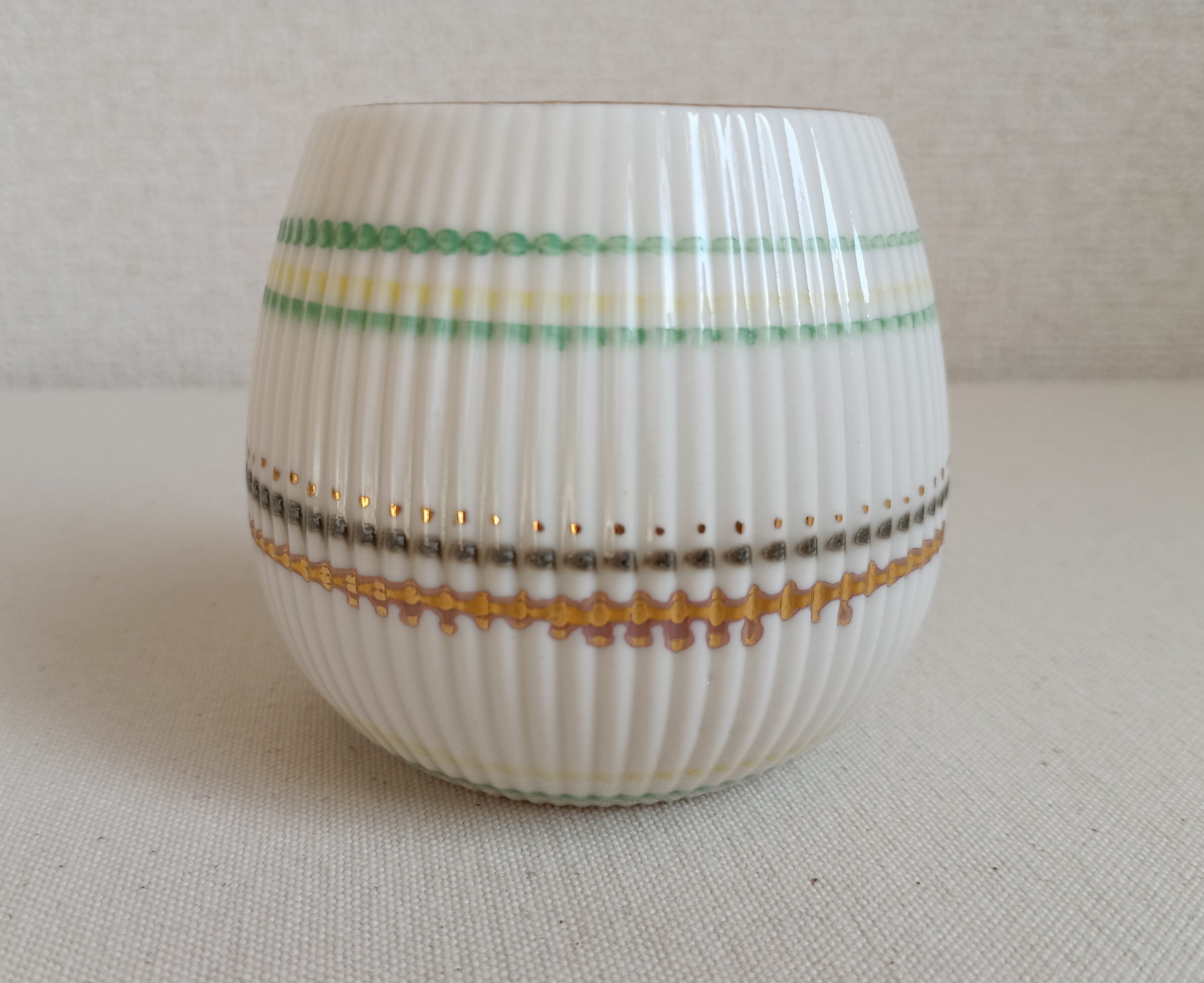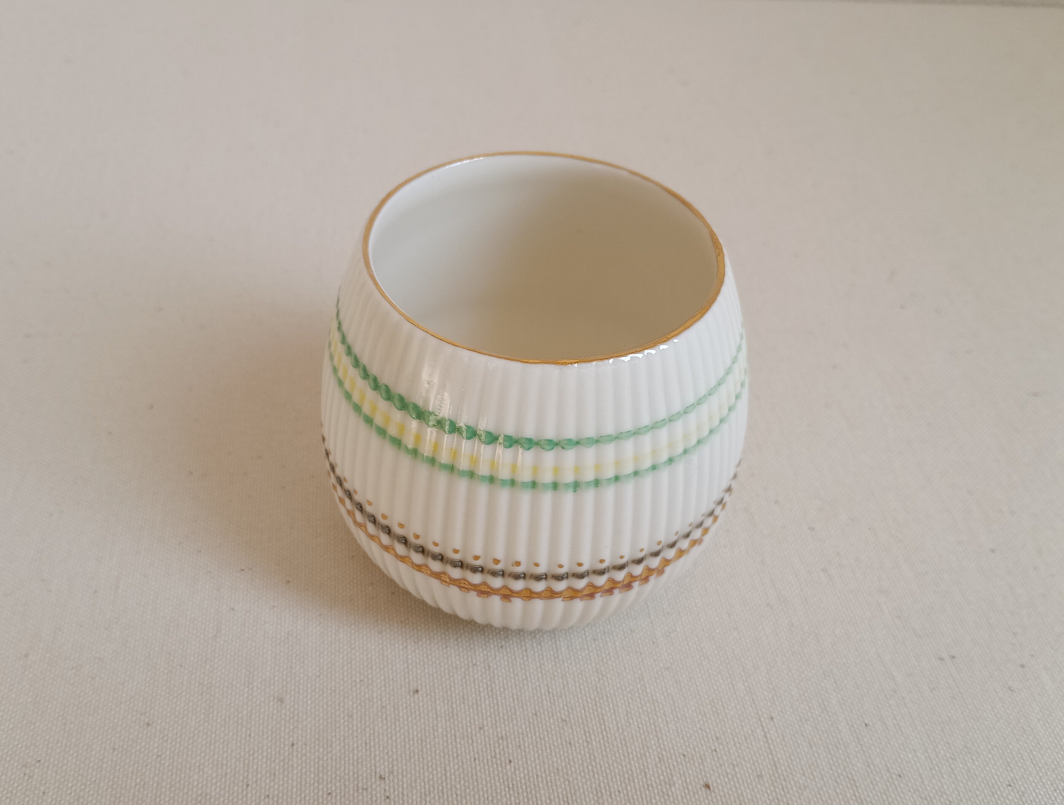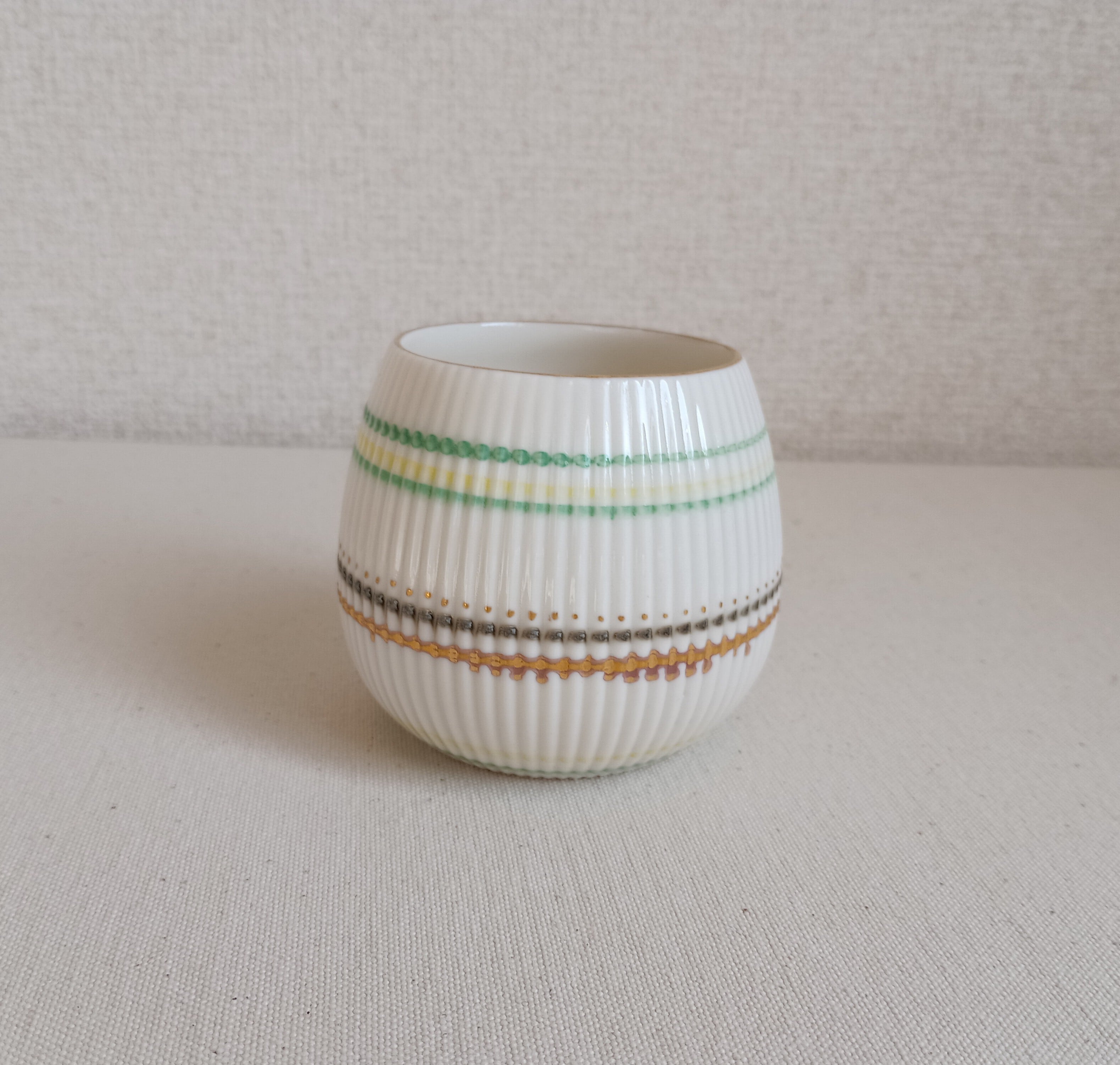グリーン×イエロー×茶のラインにゴールドの組み合わせ。