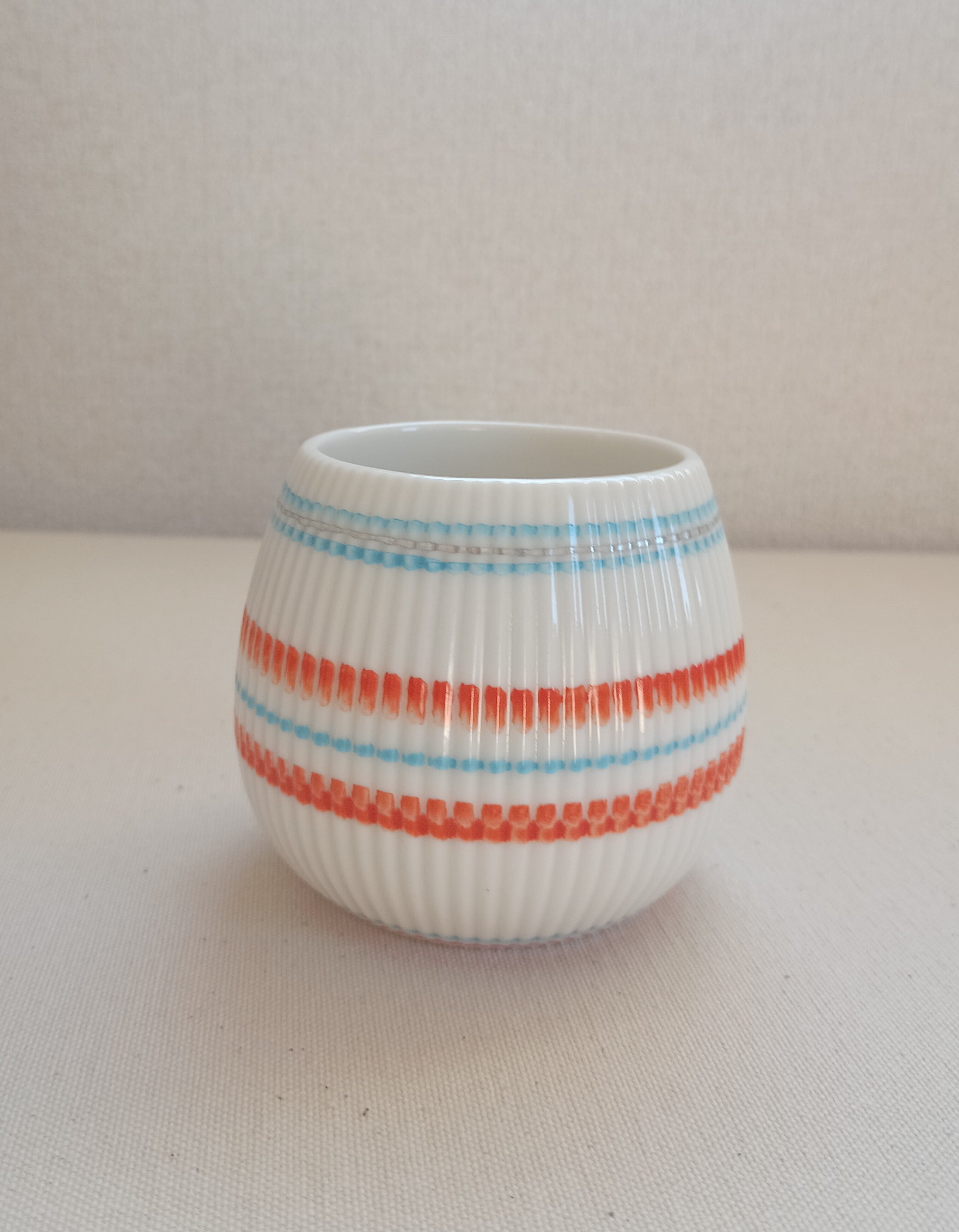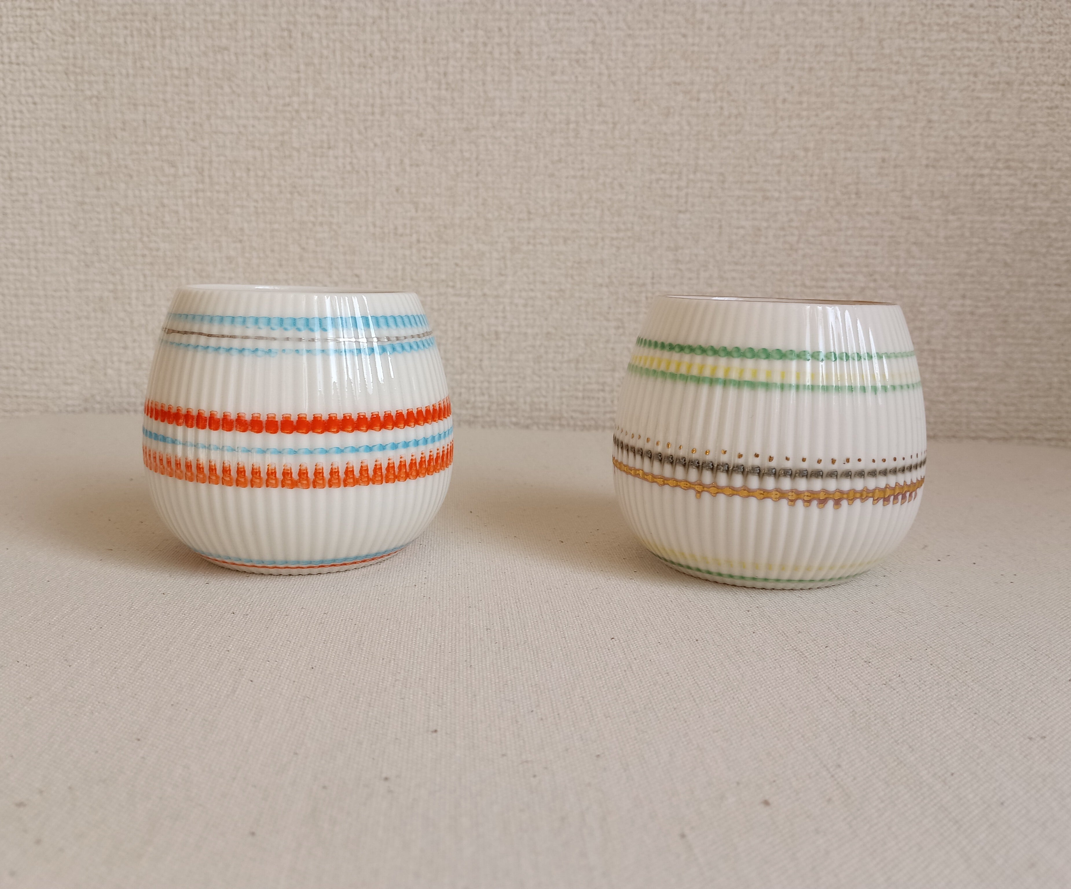 同じカラーでも、作品により線の太さやあわせが違い、色の濃淡も手仕事ならではのよさが出ています。