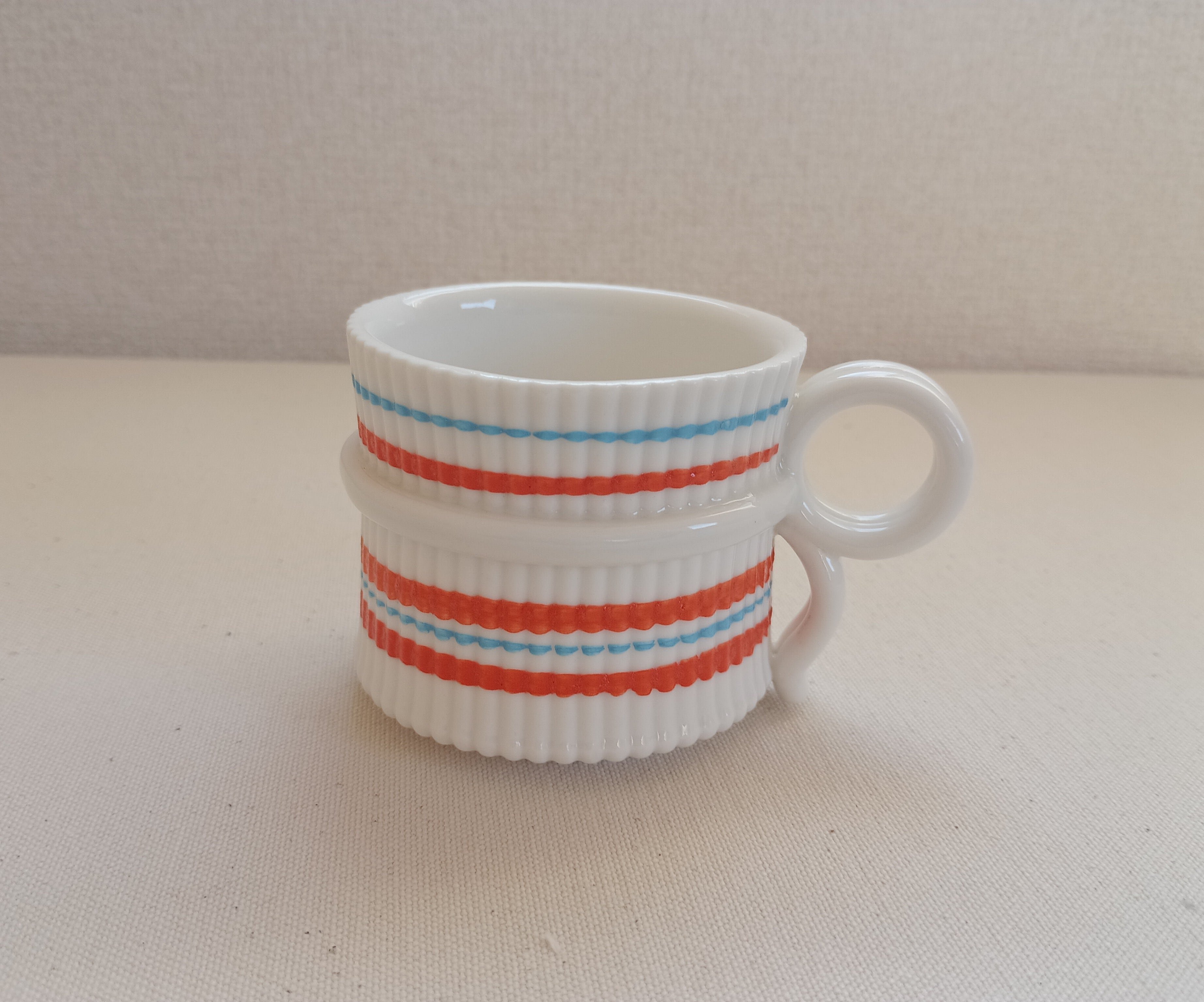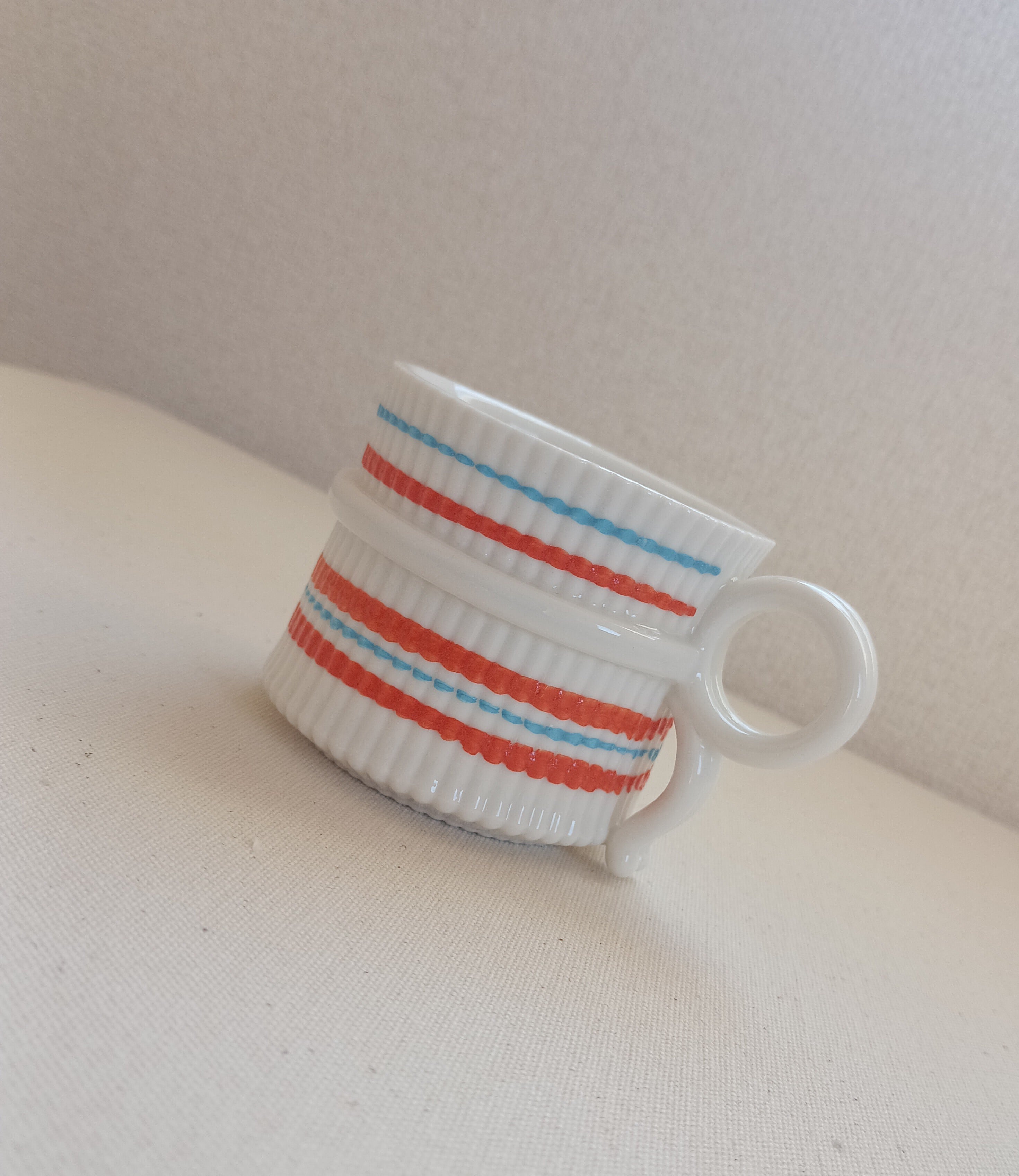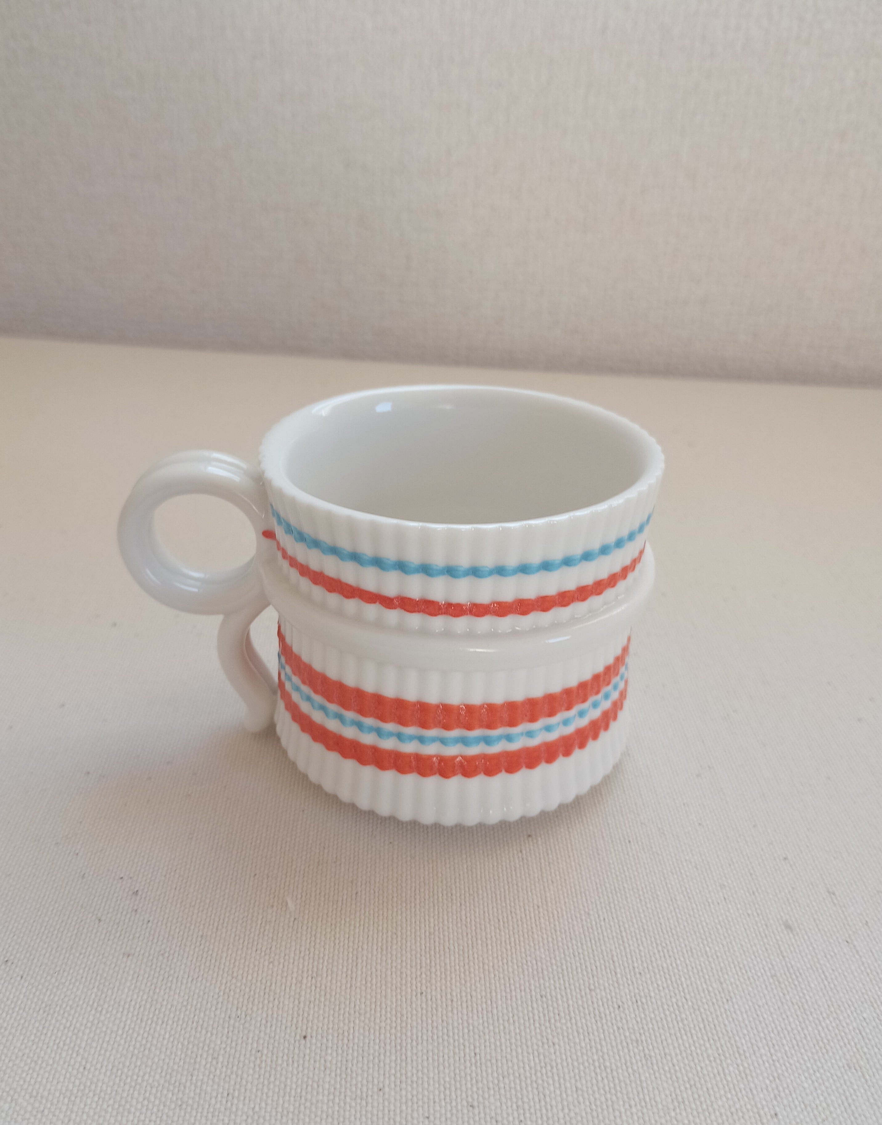 プレゼントを思わせるリボンにも見えるとっ手が、どこかアンティークのような上品な形のカップに。