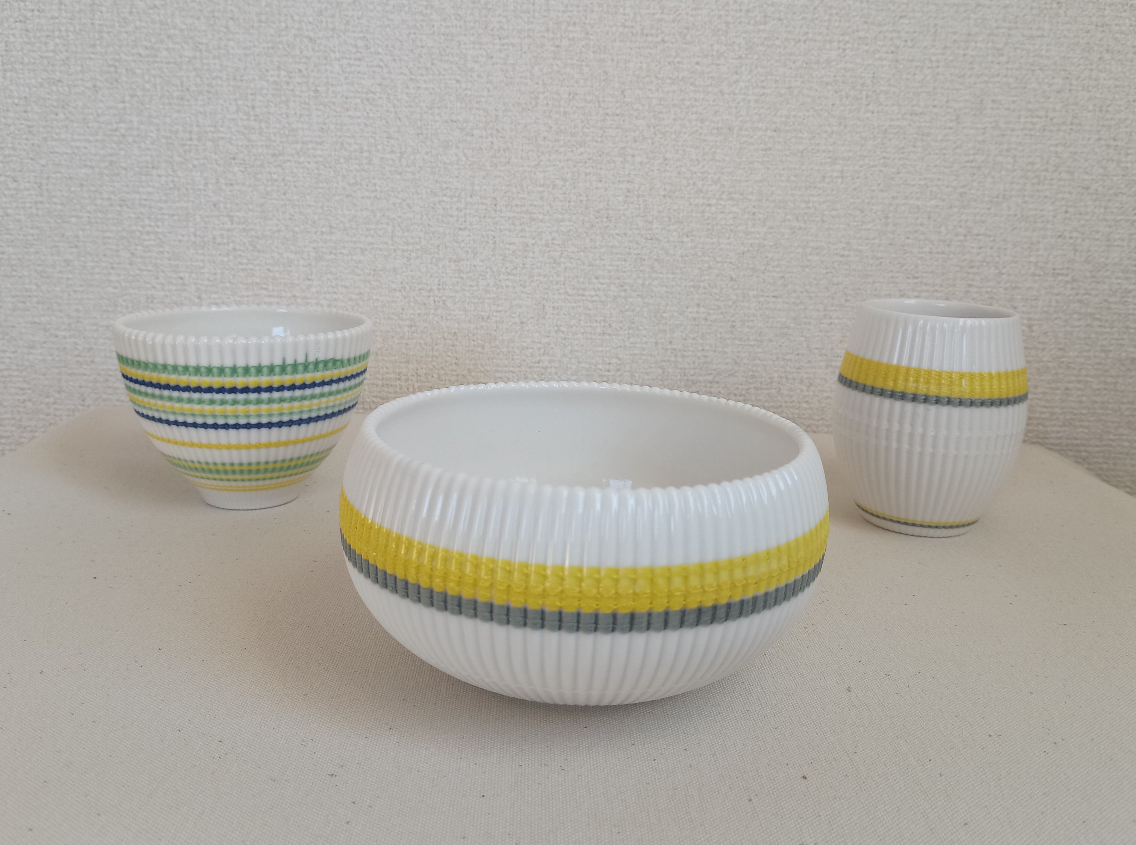 型を用いた近代的な技法に、ポップなカラーが印象的です。