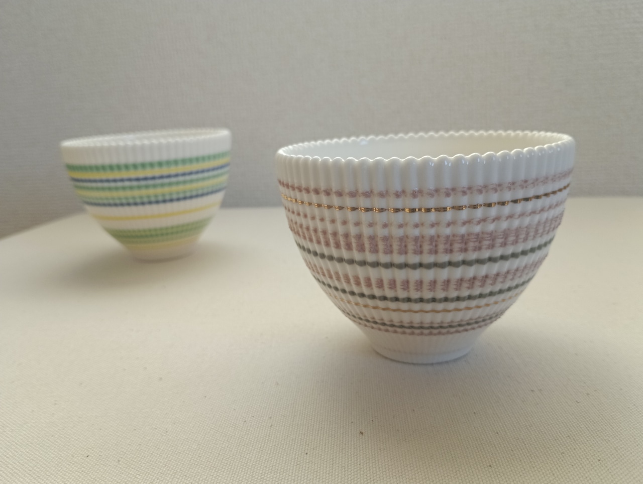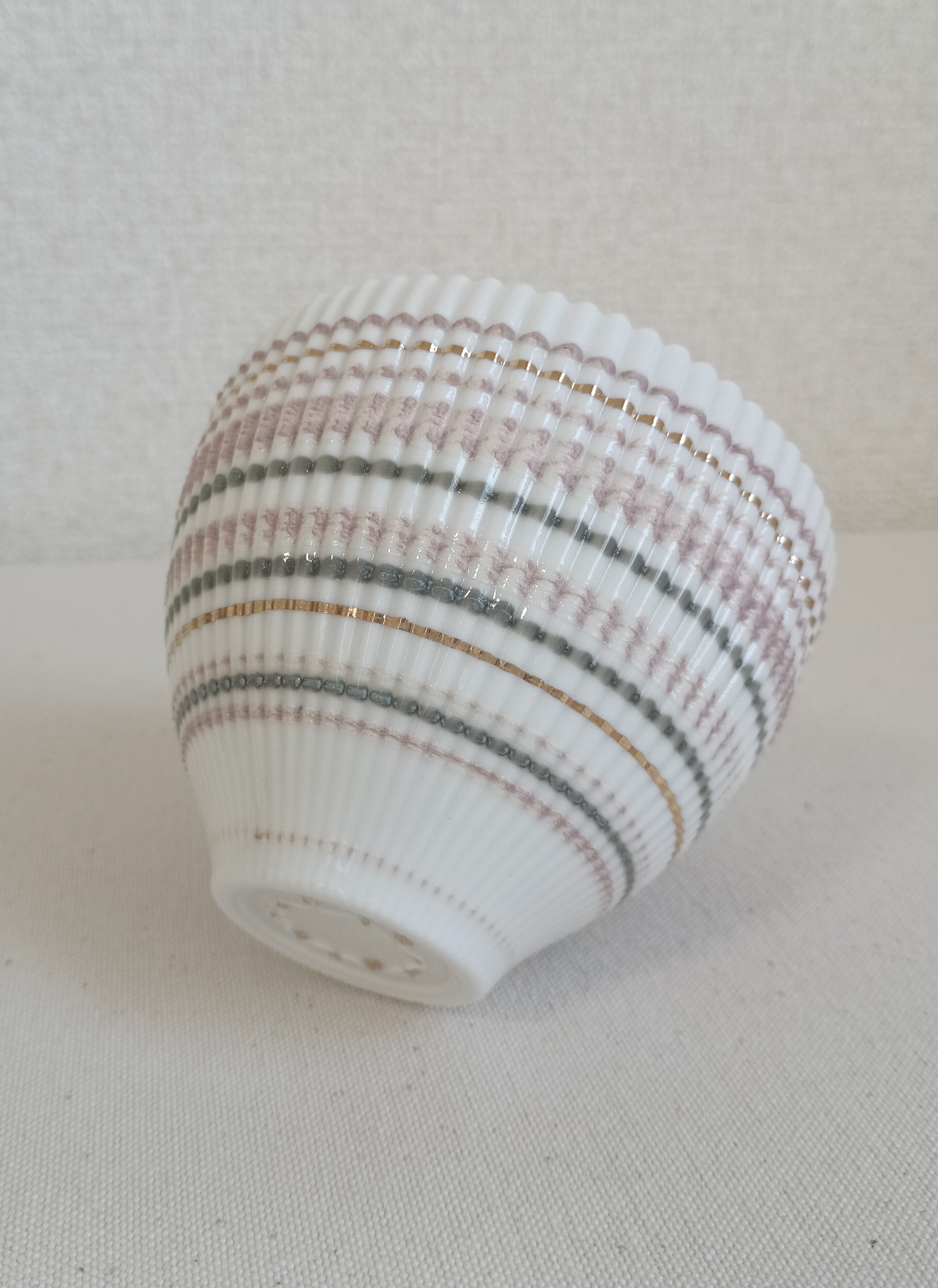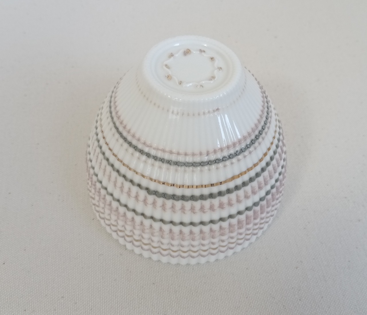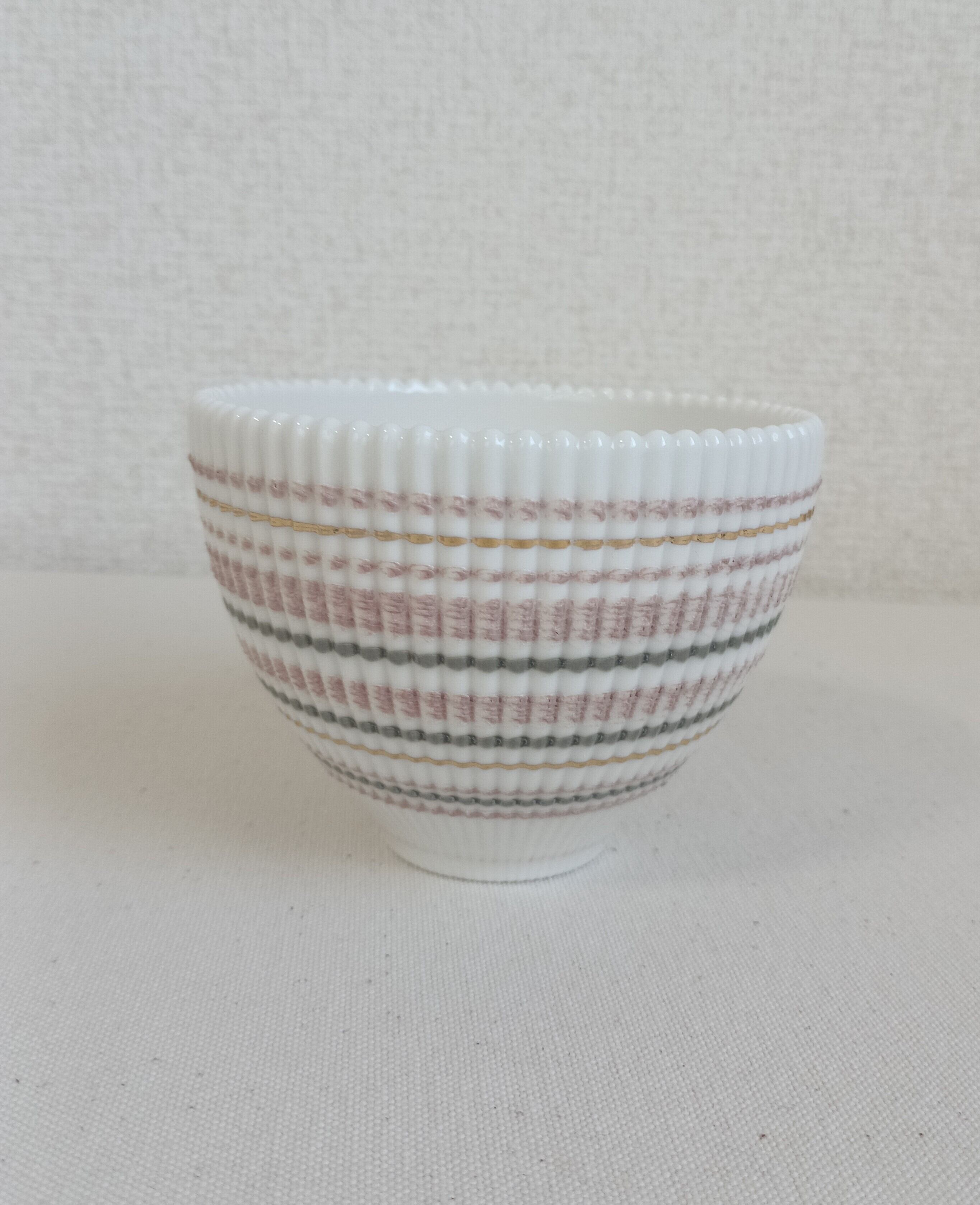 淡いピンクのボウルはスモーキーな雰囲気に、ゴールドのラインがポイントに。