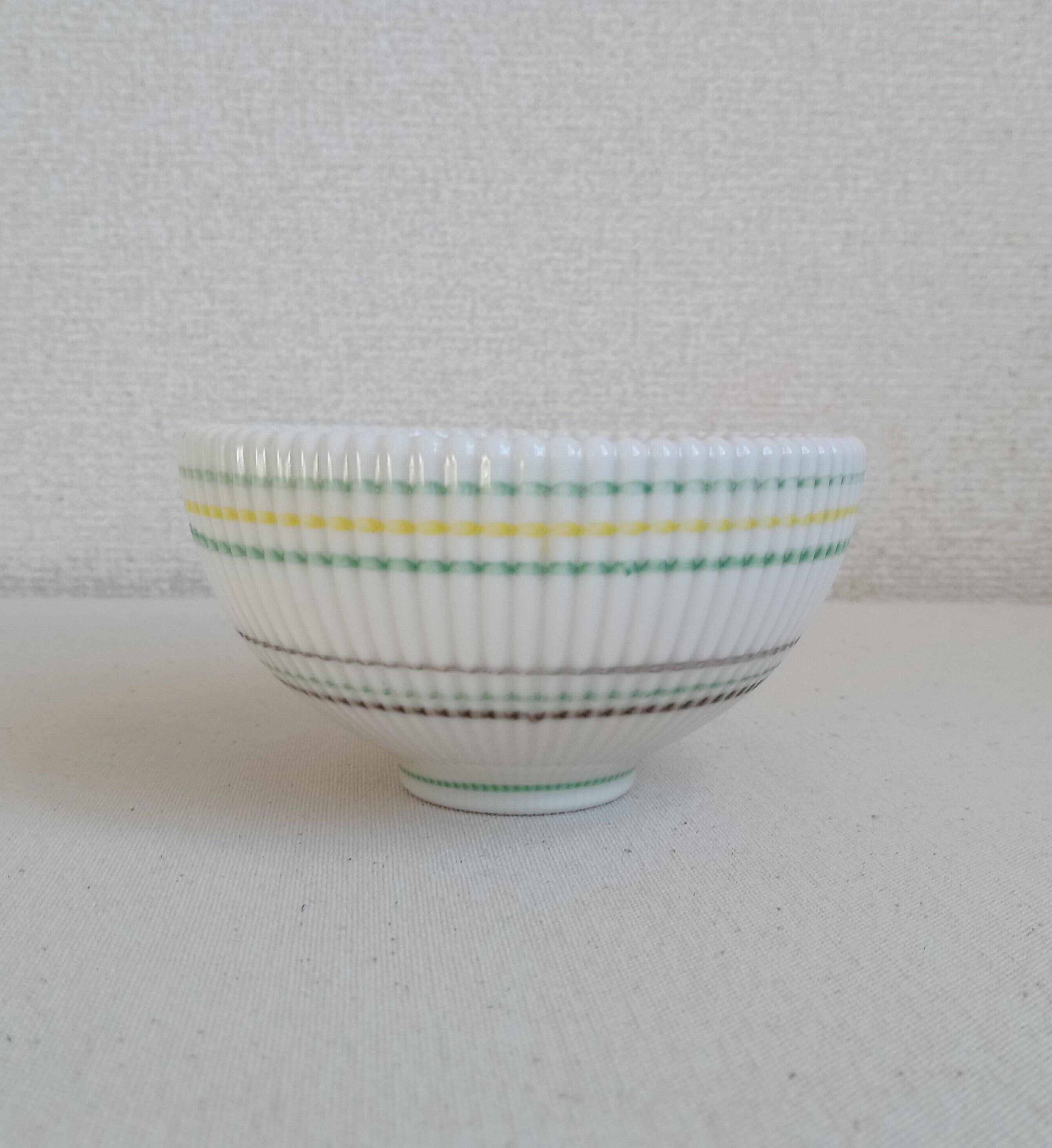 型を用いた技法に、独特の色合わせが特徴的なモダンな飯椀です。